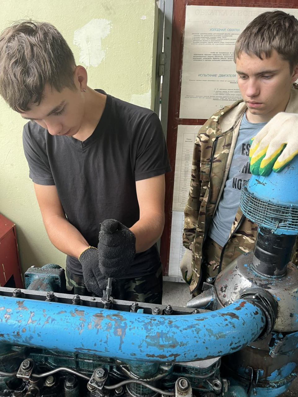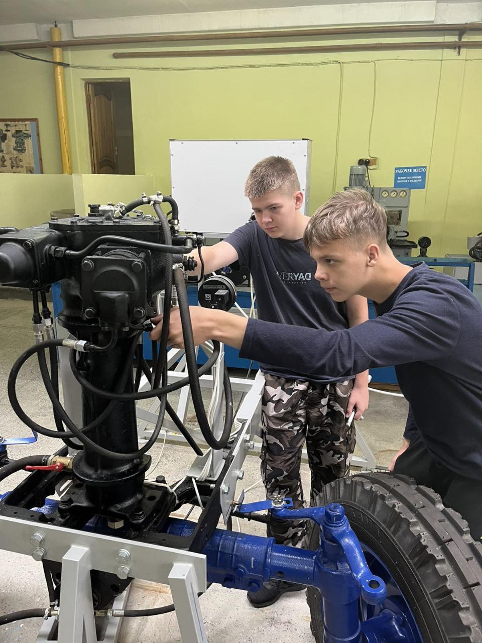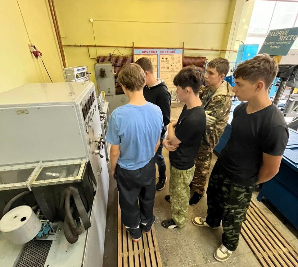 Ребята изучают современное многофункциональное оборудование при проведении технического обслуживания тракторов и самоходных машин