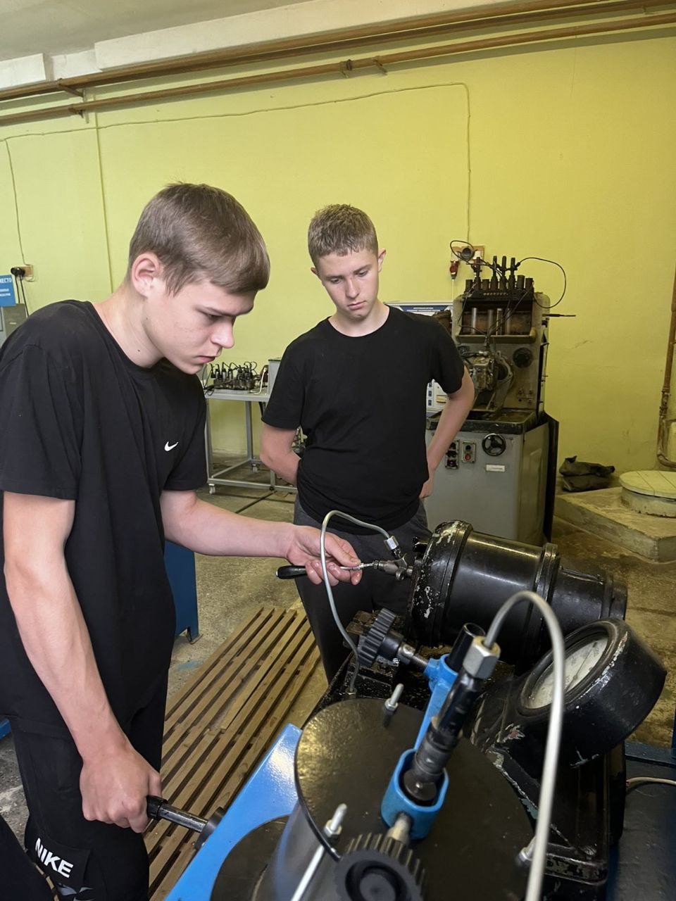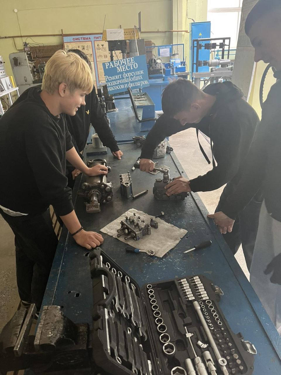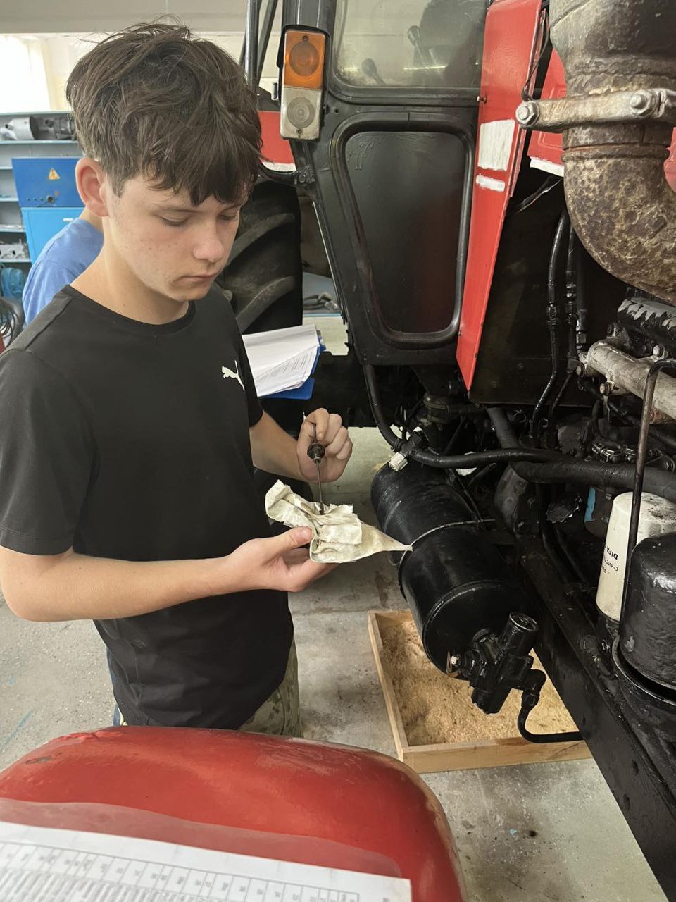Ребята изучают современное многофункциональное оборудование при проведении технического обслуживания тракторов и самоходных машин
