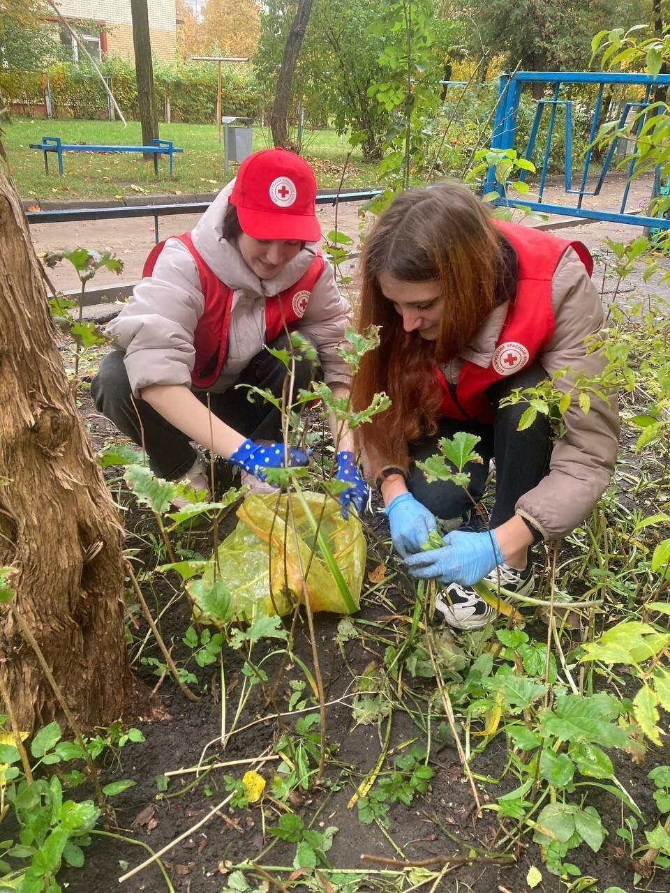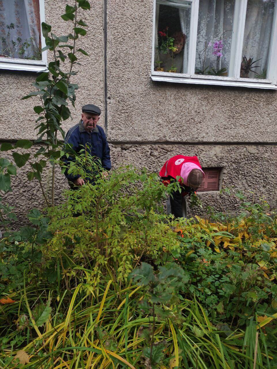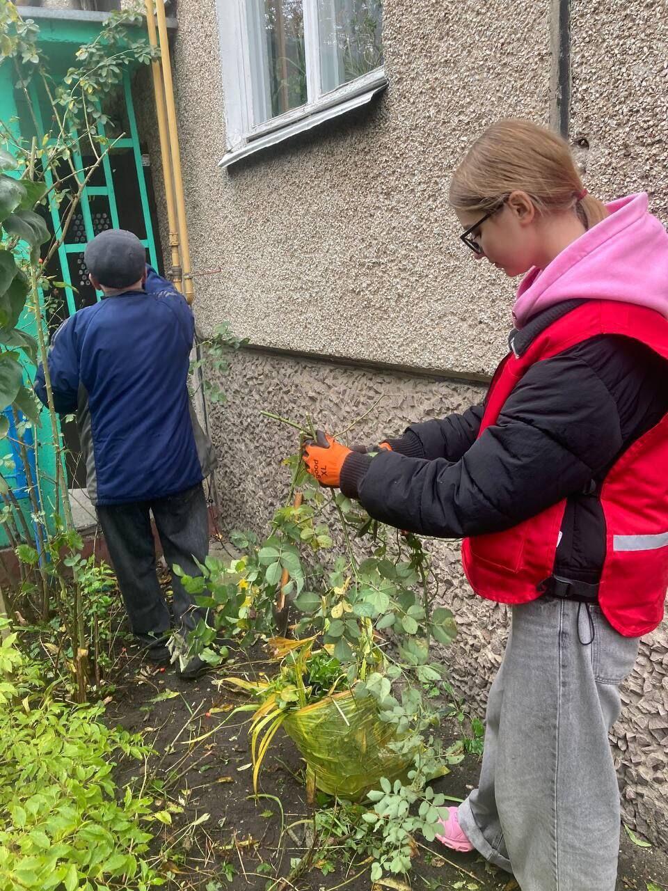 Девушки подготовили палисадник под окнами квартиры Лазаря Львовича и Натальи Ефимовны к зимнему периоду. После выполненных работ хозяева пригласили волонтеров на чаепетие.