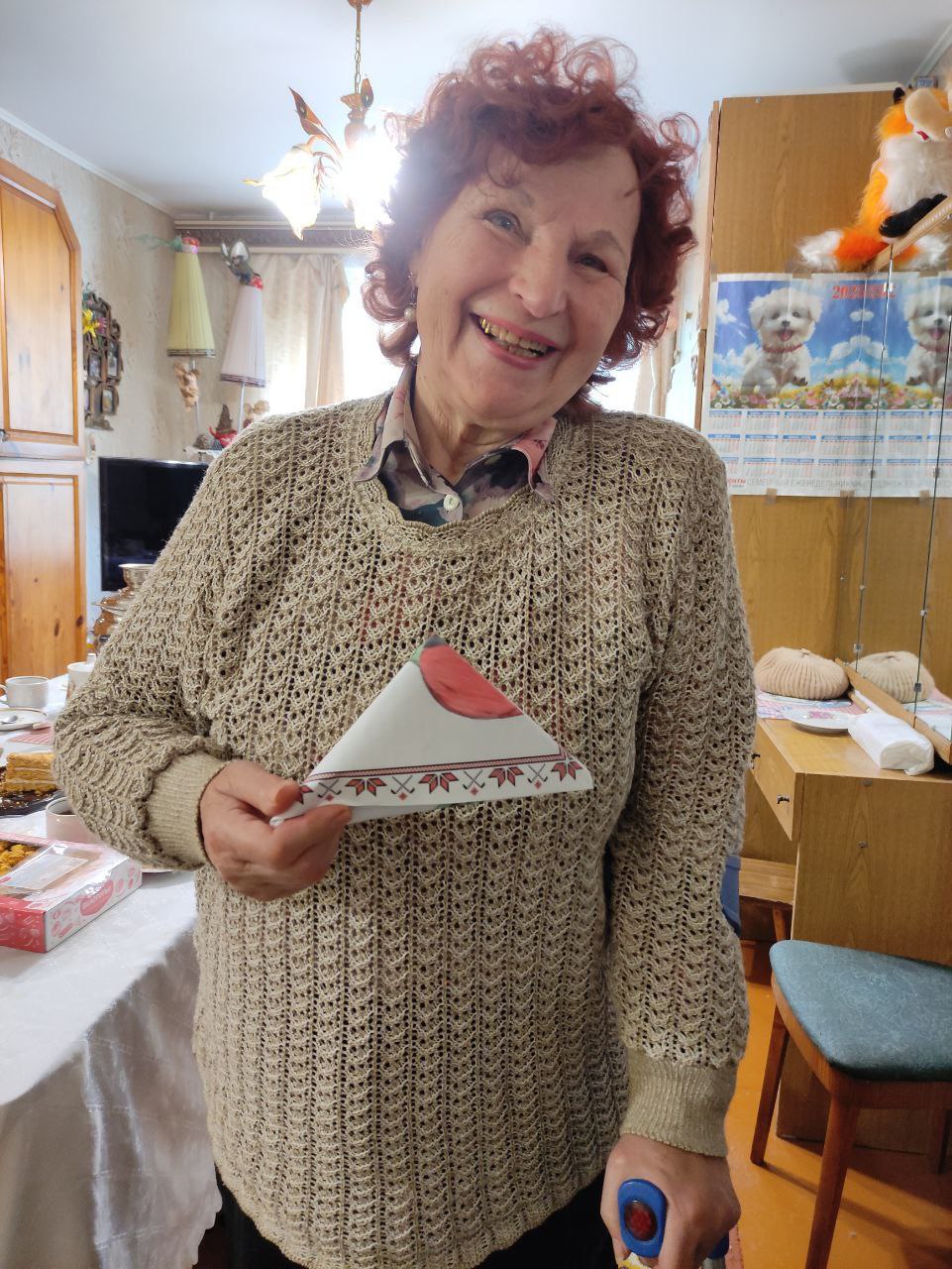 За столом Наталья Ефимовна поделилась радостным событием. Она стала победительницей творческого конкурса "Слова, согревающие сердца", посвященного 80-летию Победы в Великой Отечественной войне и 21 октября отправится на торжественную церемонию в Минск.