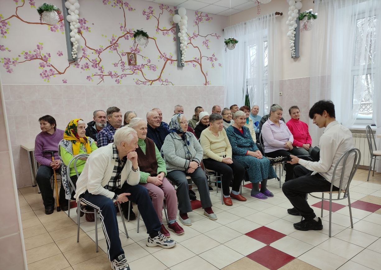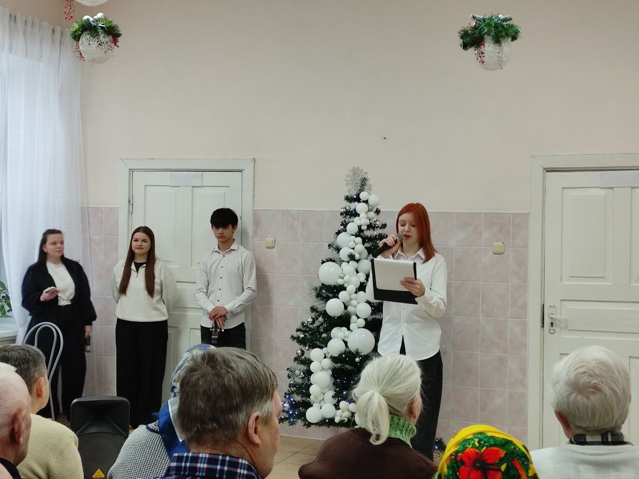 Члены волонтерского отряда "Забота" Лидского государственного технологического колледжа представили праздничную программу "Новогодние чудеса" для проживающих в отделении круглосуточного пребыванием для граждан пожилого возраста и инвалидов