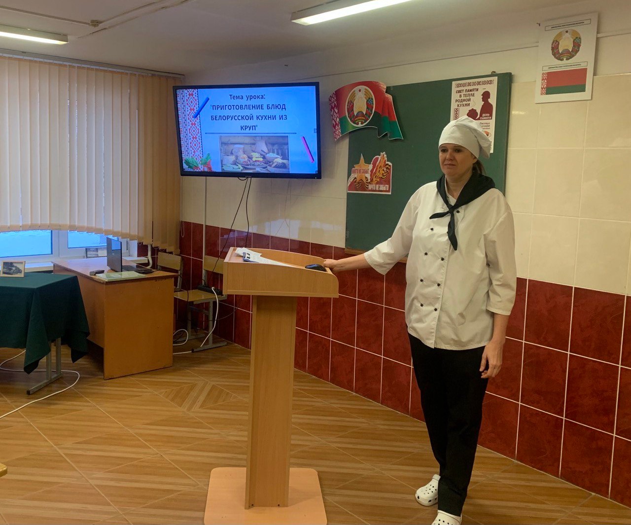 Мастер производственного обучения учреждения образования Куди Елена Станиславовна поделилась с коллегами опытом работы по формированию у учащихся умений и навыков по приготовлению блюд белорусской кухни из круп: манника, рисовых биточков с морковью, жура по-деревенски