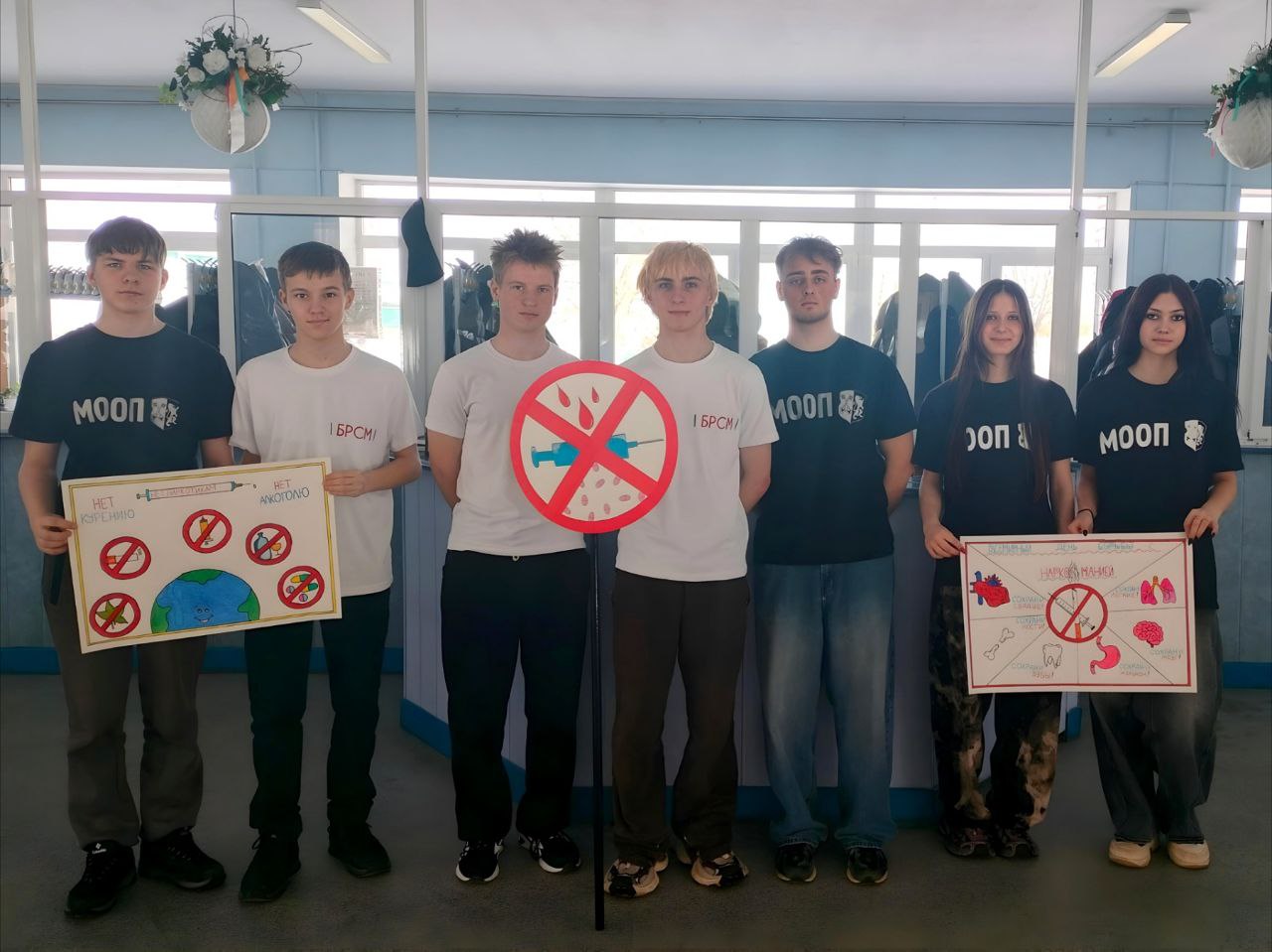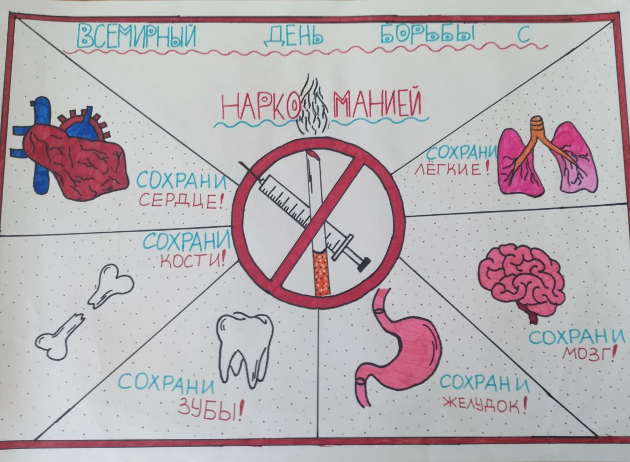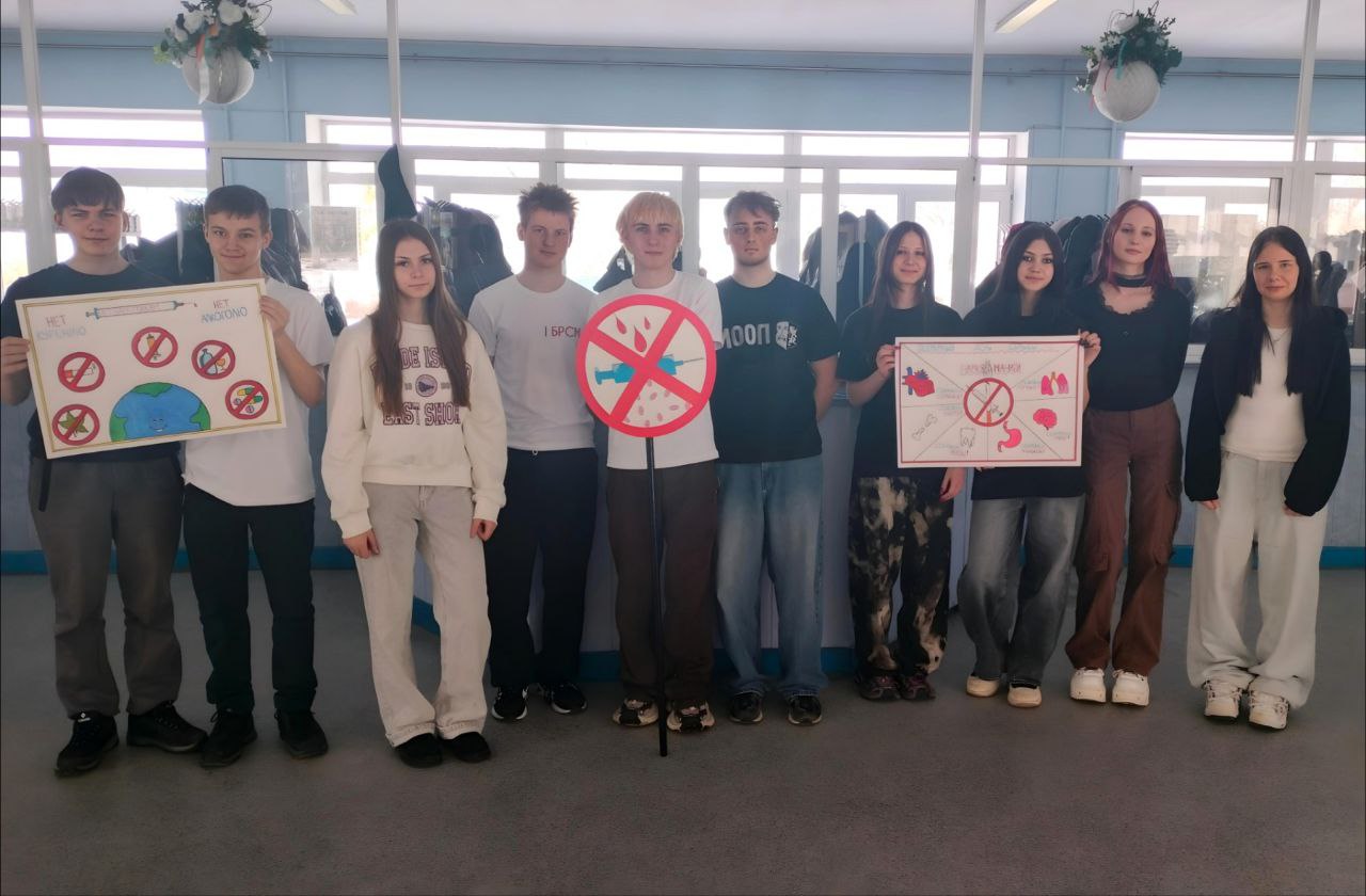 Ребята создали плакаты к Международному дню борьбы с наркоманией и продемонстрировали их сверстникам. Также ребята сагитировали других учащихся произнести речевки на актуальную тему. Члены молодежного отряда охраны правопорядка призывали ребят вести здоровый образ жизни.