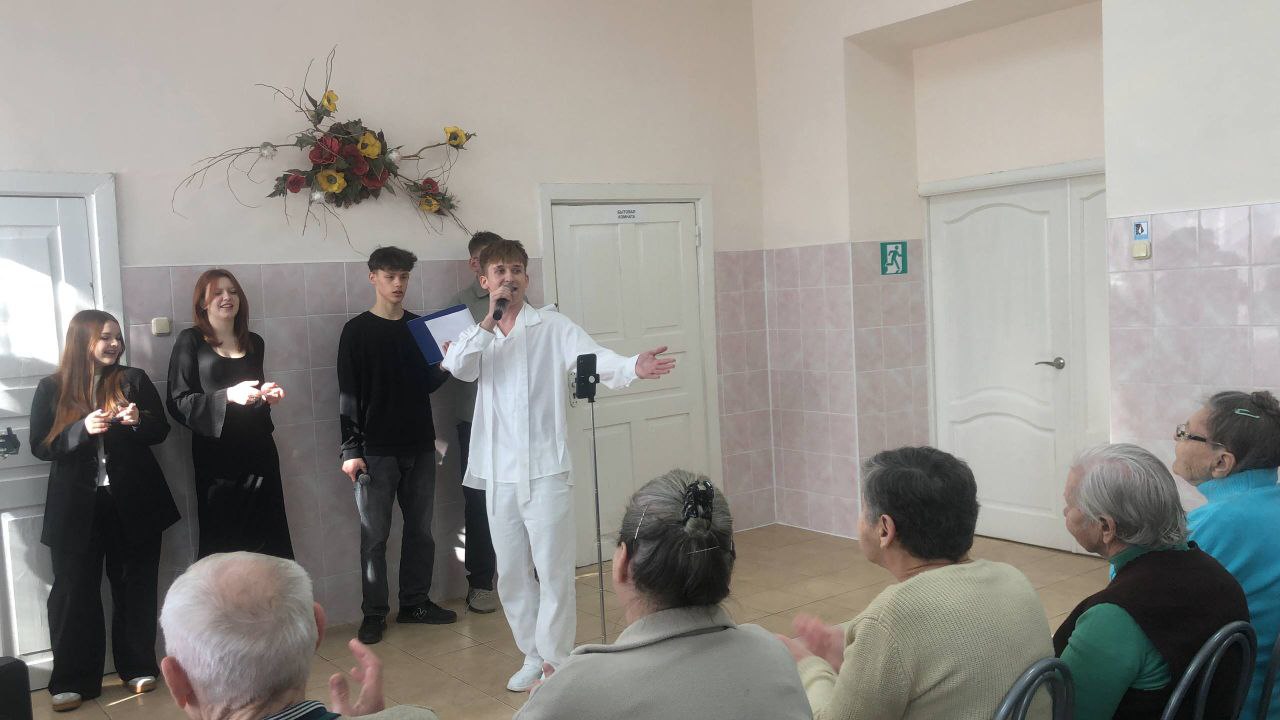 Концертная программа "Весна, музыка, любовь" была сегодня представлена проживающим в отделении круглосуточного проживания для граждан пожилого возраста и инвалидов волонтерским отрядом "Забота"