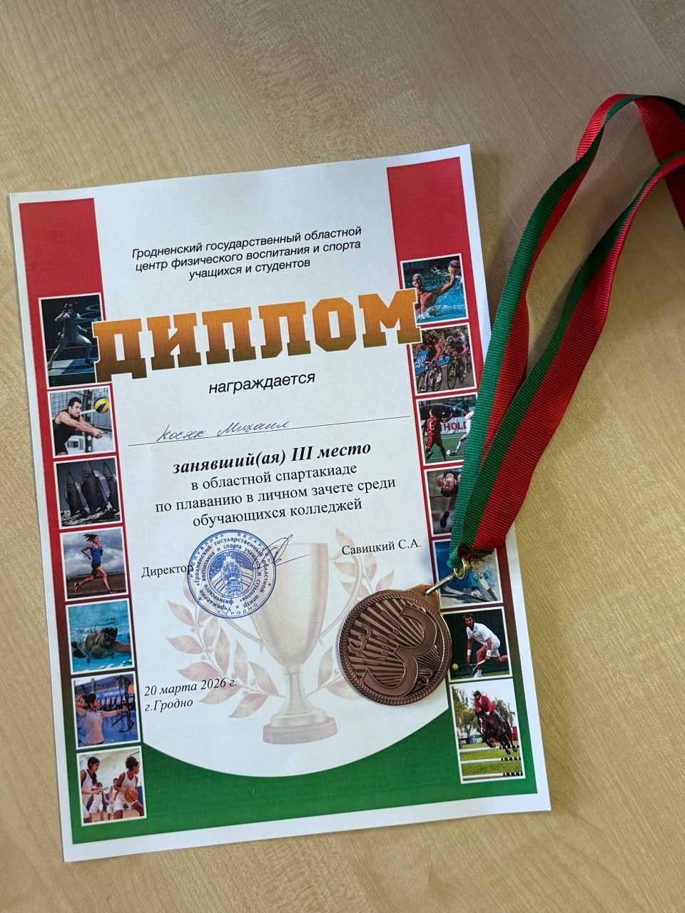 Учащийся 176 учебной группы Михаил Косяк стал призером в областной спартакиаде по плаванию в личном зачёте среди обучающихся колледжей