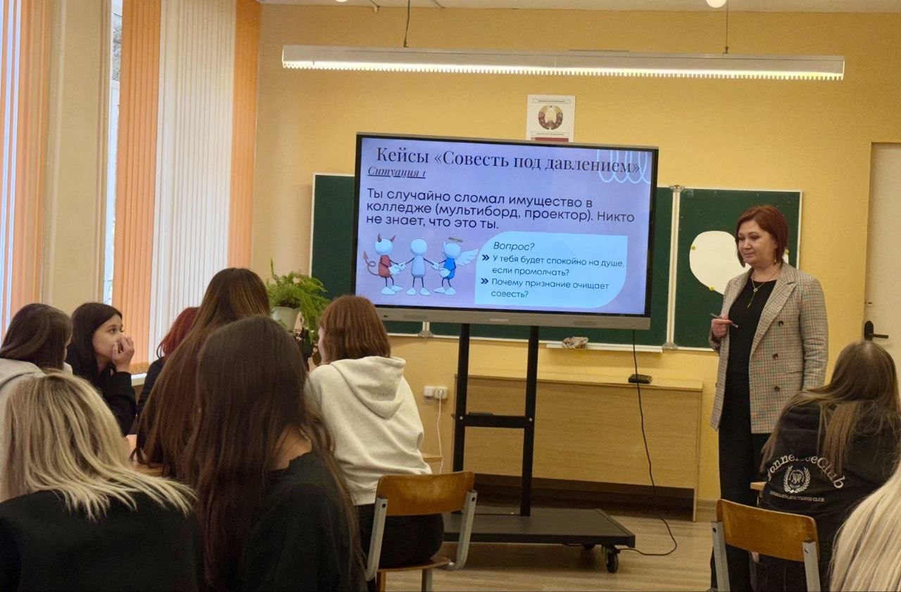 В рамках заседания куратор группы 2 курса, Тишук Елена Казимировна, провела открытое мероприятие по теме "Совесть - мерило нравственности".