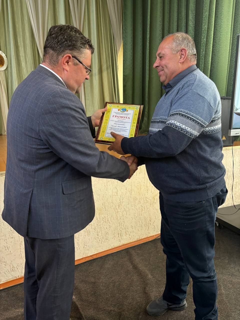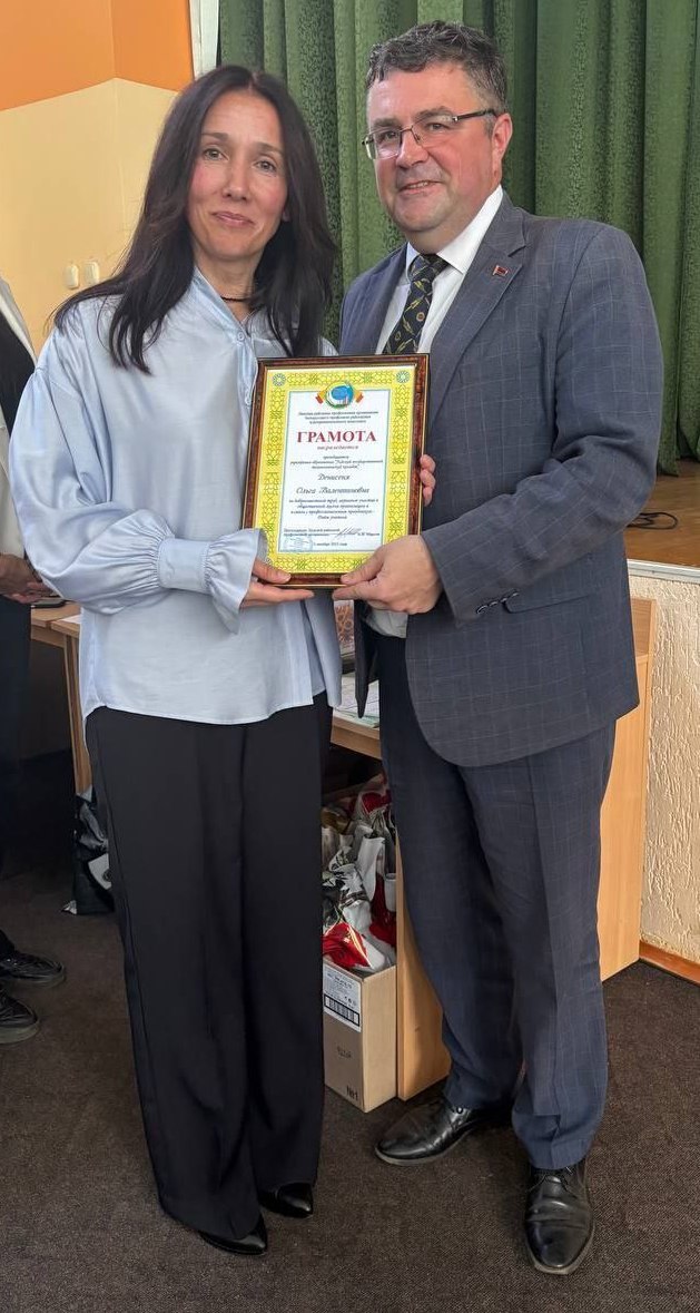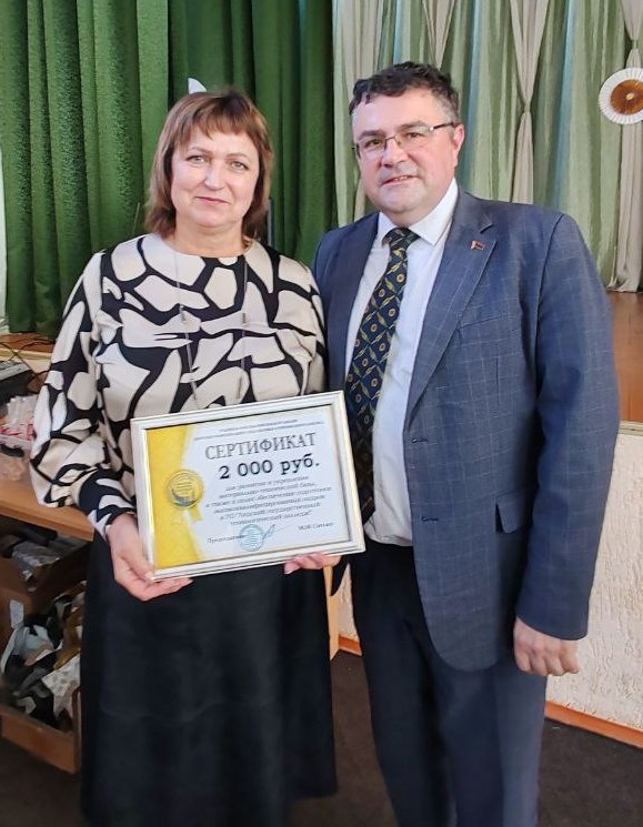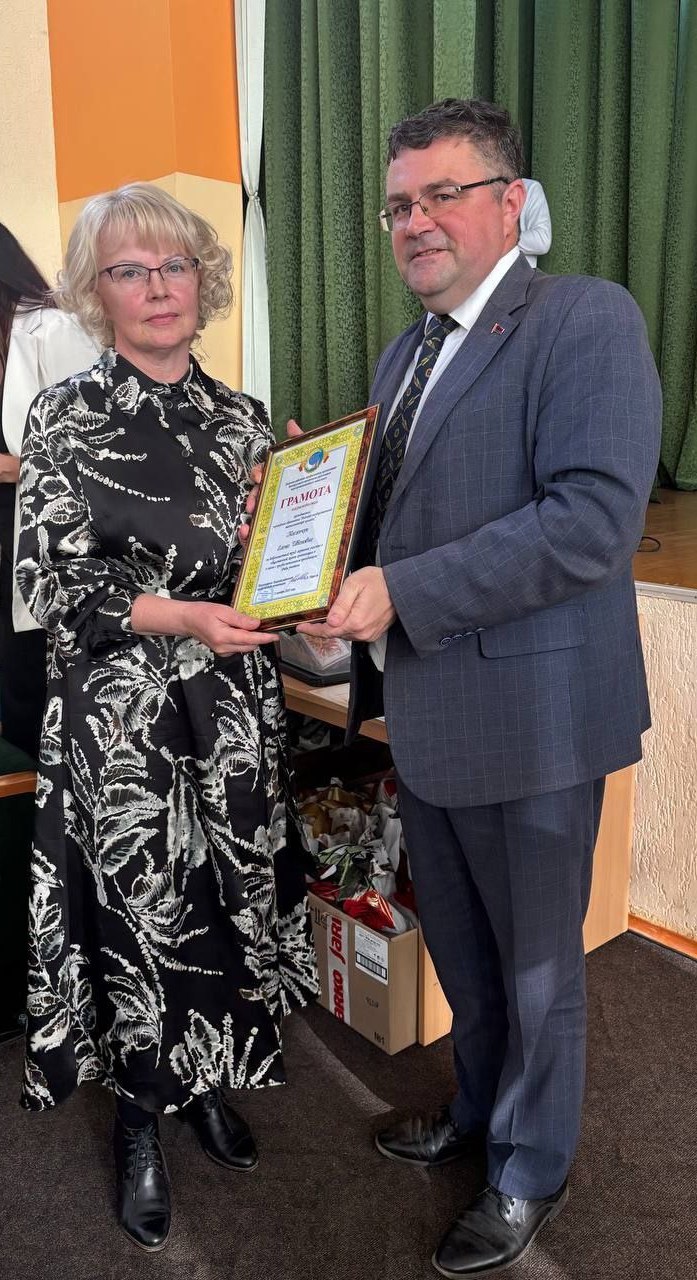 В торжественной обстановке директору колледжа, Валентине Яновне Севастиян, подарок вручил председатель Лидской районной организации Белорусского профсоюза работников АПК, Александр Иванович Марсов