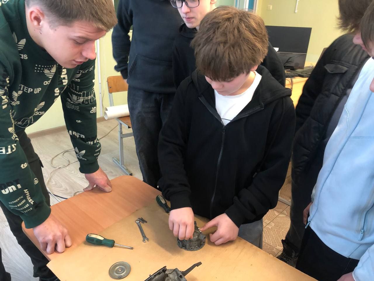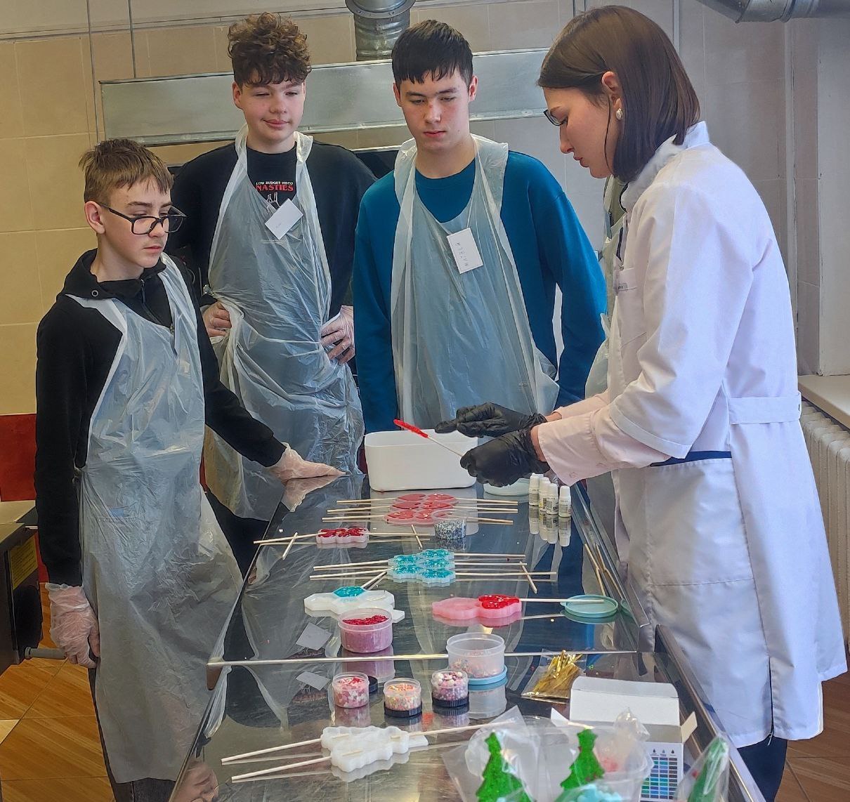 В лаборатории приготовления кондитерских блюд ребятам представилась возможность самим сделать леденцы, в лаборатории приготовления горячих блюд - мини-пиццы. В лаборатории парикмахерского искусства ребятам рассказали об особенностях укладки волос, в кабинете спецдисциплин познакомили с устройством некоторых деталей и проверили их знания на практике.