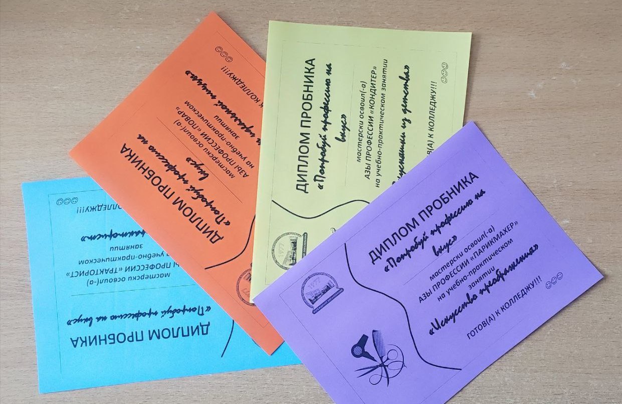 Все ребята получили дипломы пробника по специальности "Секреты идеальной пиццы", "Искусство преображения", "Вкусняшки из детства", "Я - тракторист".