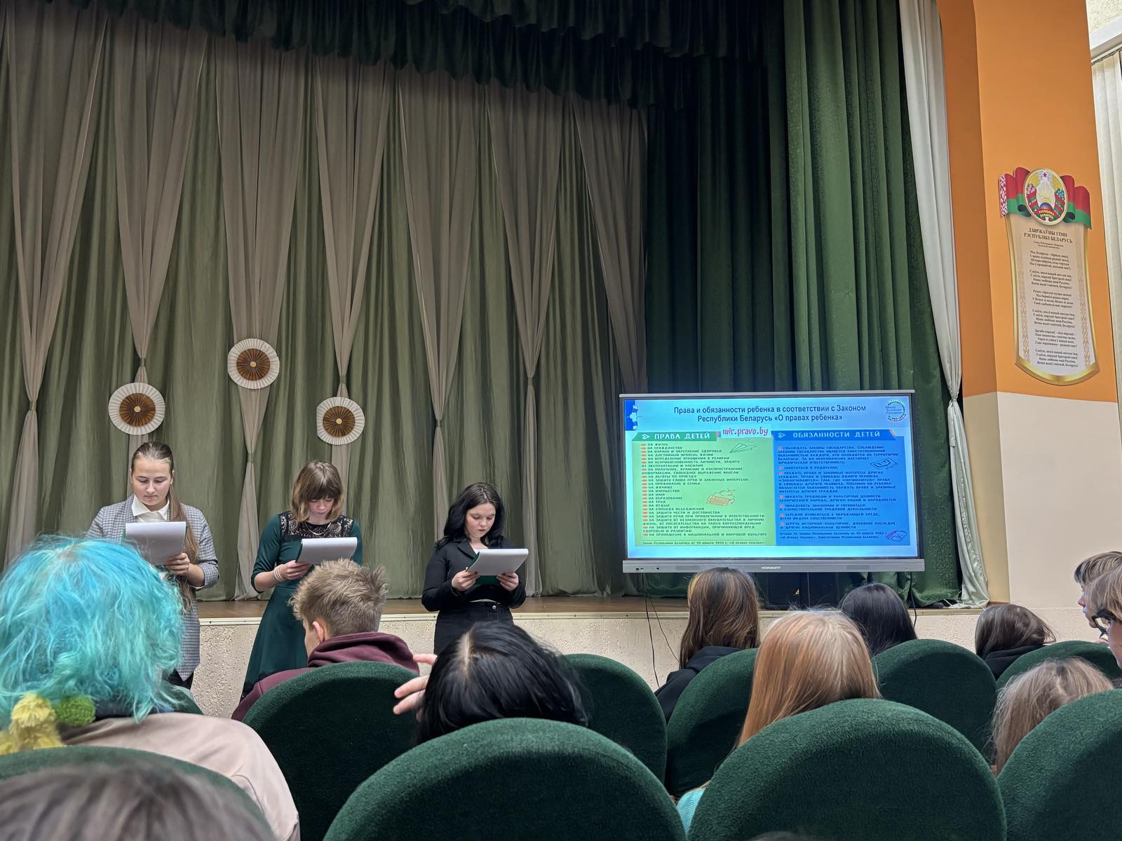 В фокусе обсуждения были затронуты следующие аспекты: гарантии государства по защите прав и свобод граждан, Конституционные права и обязанности гражданина Республики Беларусь, обязанности учащихся, права ребенка, взаимосвязь прав и обязанностей. С ребятами были актуализированы знания по данным вопросам.