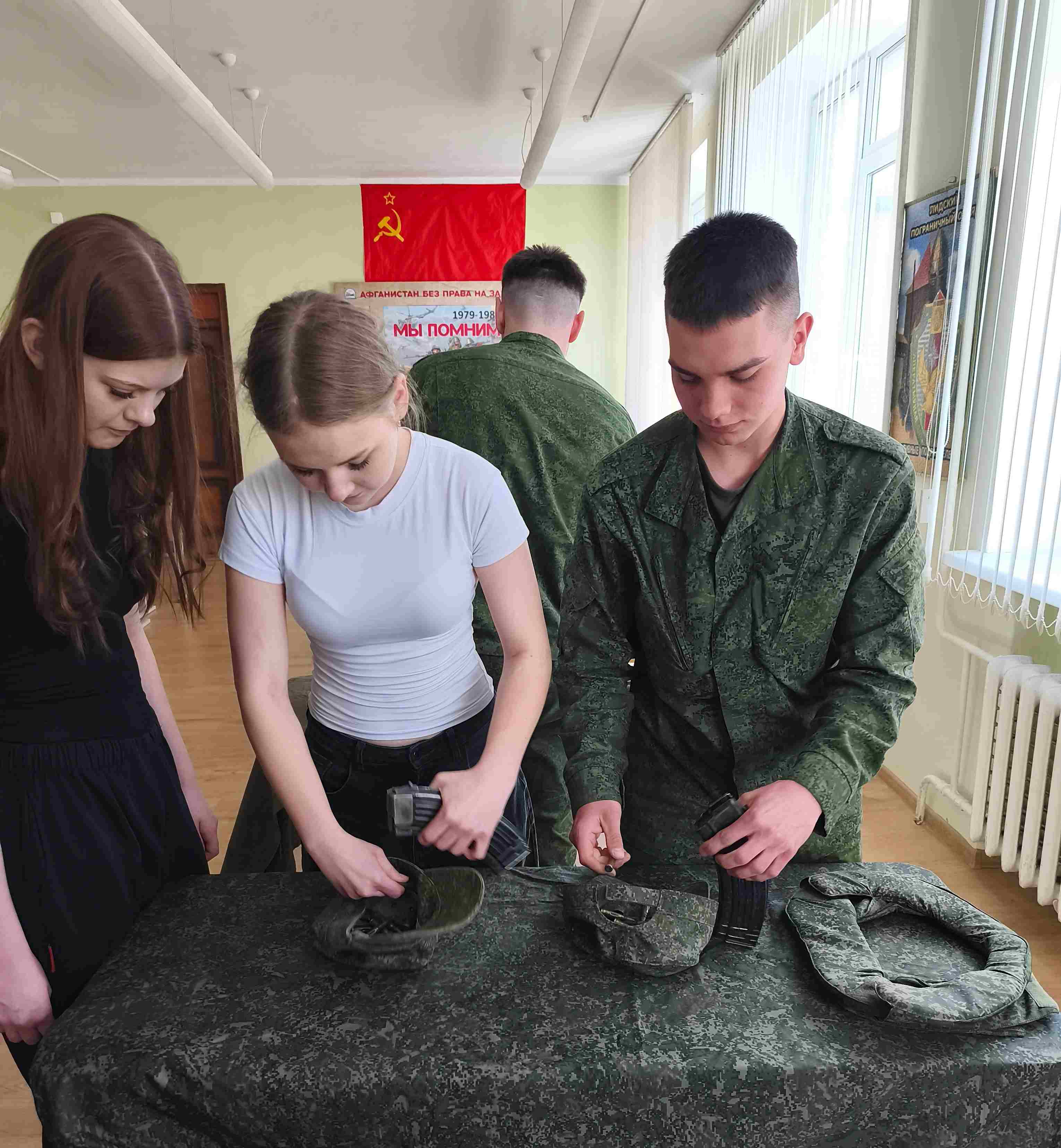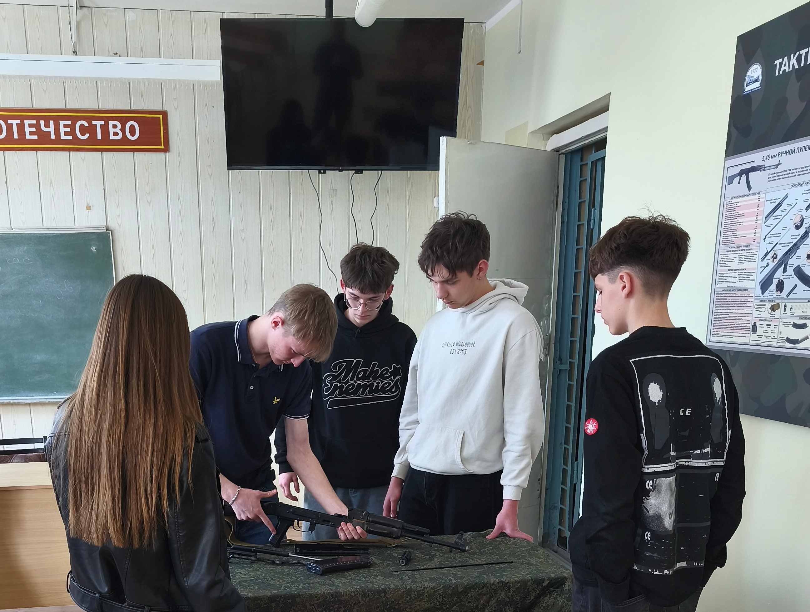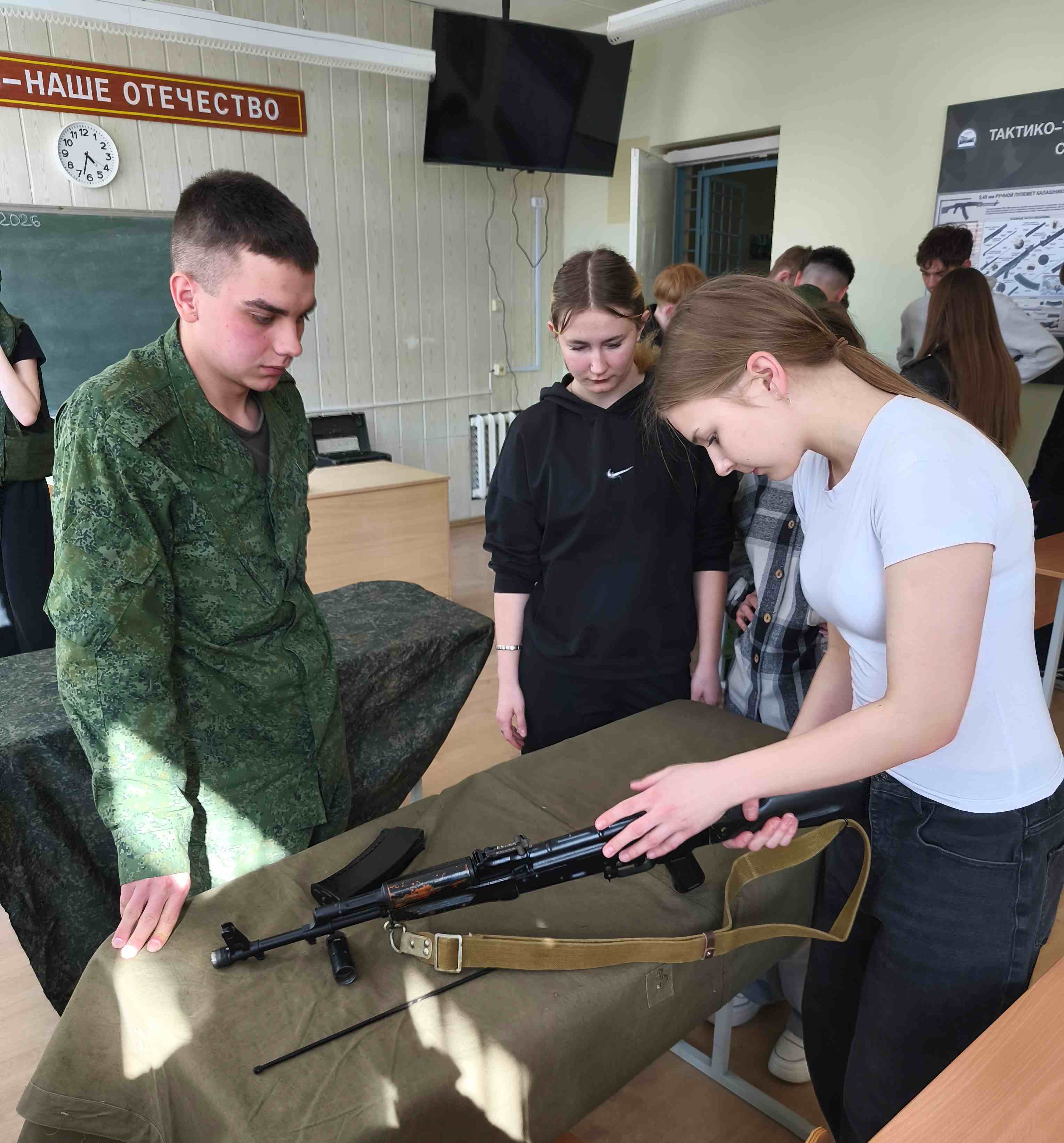 В ходе занятий юношам и девушкам рассказали тактико-технические характеристики стрелкового вооружения, средств защиты от огневого поражения. В ходе практической части занятия учащиеся тренировались в разборке и сборке автомата, снаряжении магазина. Попробовали передвигаться в бронежилете.